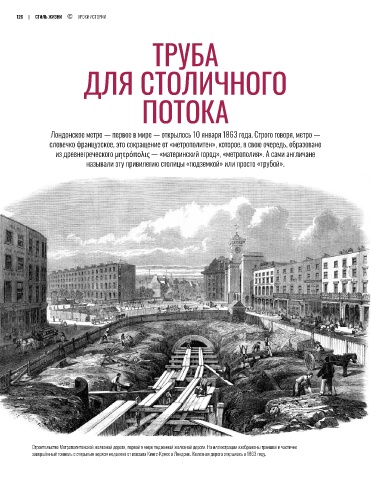 Строительство Метрополитенской железной дороги, первой в мире подземной железной дороги. На иллюстрации изображены траншея и частично