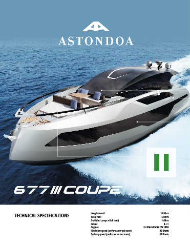 TECHNICAL SPECIFICATIONS Length overall 18.94 m 5.04 m Beam max Draft (incl. props at full load) 1.68 m Cabins 3 + 1 Engines 2 х Volvo Penta IPS 1350 Maximum speed (performance test mass) 36 Knots Cruising speed (performance test mass) 28 Knots